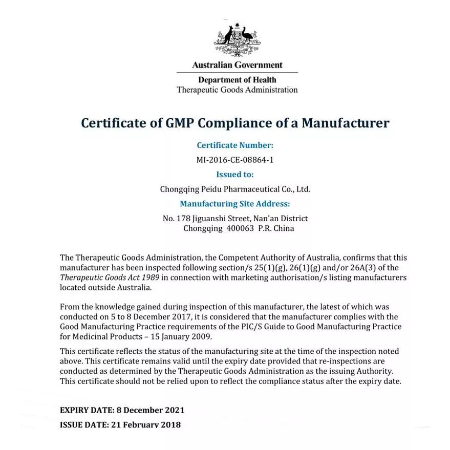 澳大利亚TGA证书